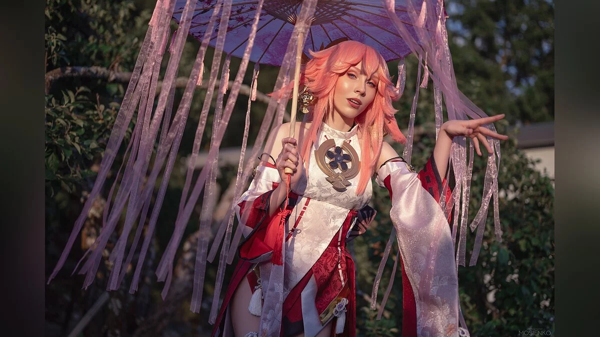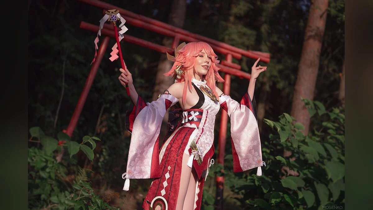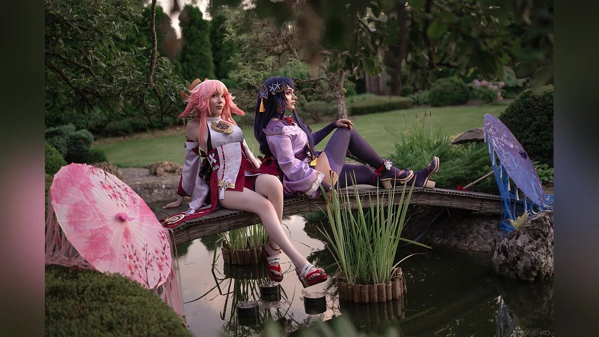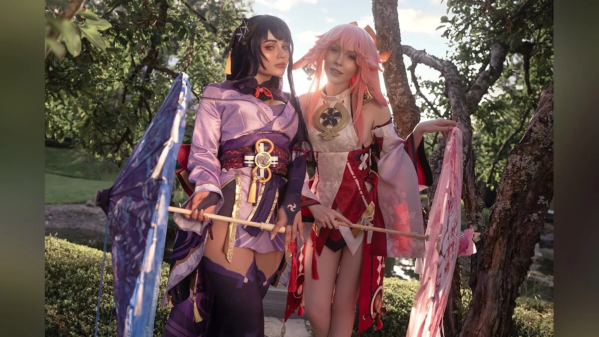 Островной регион Инадзума в Genshin Impact — явная отсылка к средневековой Японии. Там даже есть свой сёгунат, который управляется девушкой по имени Баал, также известной как Райден. Косплей на неё сделала Alcololi. Компанию ей составила Holyleza в образе Яэ Мико, Верховной жрицы храма Наруками.