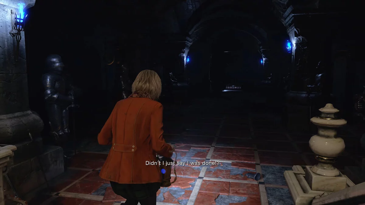 Эшли изучает библиотеку — в ремейке эту локацию существенно расширили. Исследование подземелья с рыцарями стало более напряженным.