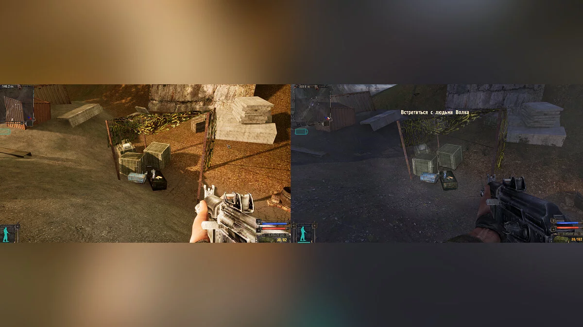 Наконец, аномалии, частницы и выстрелы в текущей версии банально невидимы. Заметить опасность и обогнуть место практически невозможно, ориентироваться приходится на звук детектора и на получение урона. Произошло это из-за того, что в актуальном билде частицы отключены, а именно они отвечают за «прорисовку» аномалий, выстрелов и некоторых мутантов.
