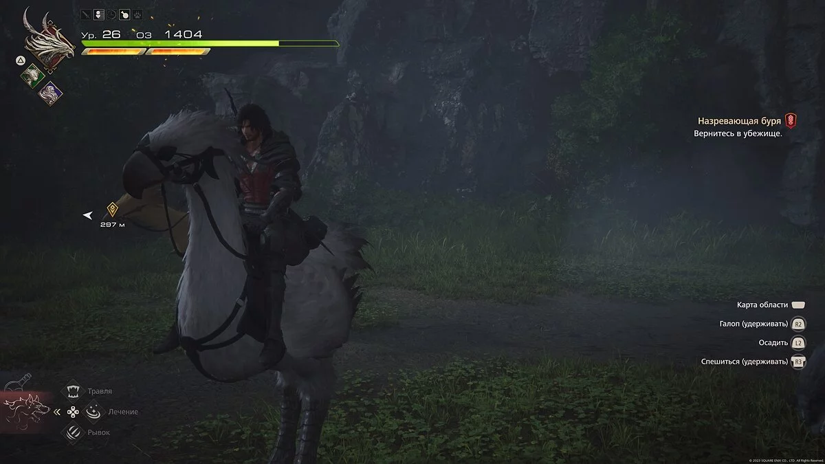 Есть лишь несколько квестов, которые дают реальные улучшения, например, ездового чокобо. Они отмечены собственной иконкой в виде плюсика на зелёном фоне, тогда как остальные побочки — восклицательные знаки. Разработчики как будто осознанно отделили важное от мусора. Это заставляет задуматься, зачем вообще нужны были такие дополнительные квесты, ведь Final Fantasy XVI отлично себя чувствует как полностью сюжетная игра.