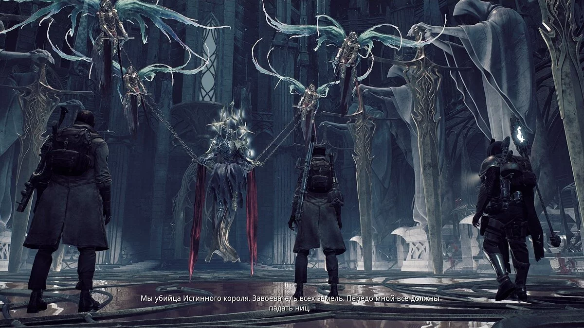 Безусловно, как и в любом соулслайке, попадаются и скучные бои, где в роли босса выступает более мощная версия обычного моба. Но в большинстве случаев у каждого врага особый тип поведения и своя уникальная атака. Например, есть один бой, во время которого нельзя долго смотреть на босса, это сводит героя с ума и приводит к мгновенной гибели. Или, еще пример, в Лосоме вас будет преследовать всадница на коне: она скачет по верхушкам домов и спрыгивает на игрока в самый неподходящий момент. Как только герой снесет ей половину здоровья, она убежит зализывать раны. Конечно, чуть позже вы найдете ее и добьете окончательно. И так с каждым боссом. Стоит также отметить наличие босса-лабиринта: предстоит сражение с запутанным пространством, где нужно уворачиваться от гигантских кубов.