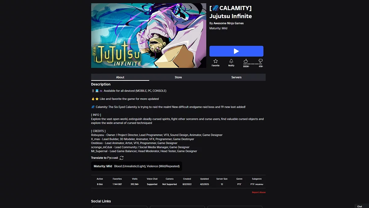 Про гру Jujutsu Infinite в Roblox