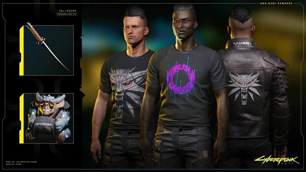 Катана «Черный единорог» (The Black Unicorn) является отсылкой к магазину GOG. В описании упоминается, что он был выкован без защиты DRM. Также само название «Черный единорог» может быть отсылкой к белому единорогу, который был в известной сцене с Геральтом и Йеннифэр. На сайте игры можно получить и другие предметы, связанные с играми CD Projekt RED. Найти эти предметы можно в квартире Ви.