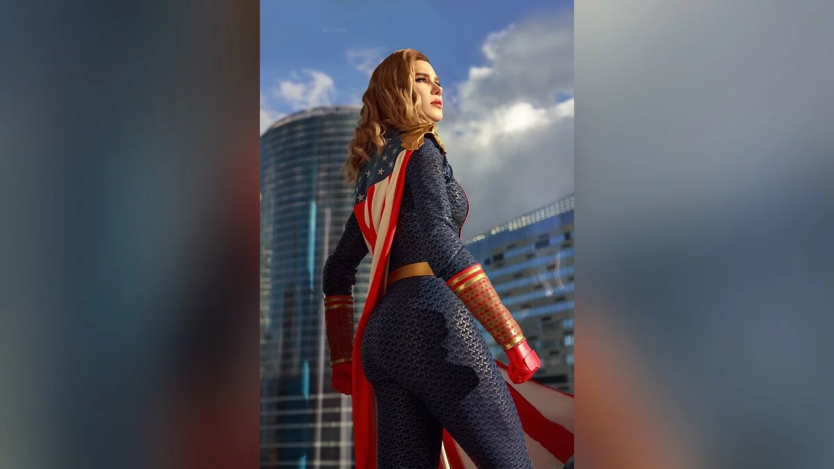 Как выглядел бы Хоумлендер из «Пацанов», если бы был женщиной. Косплей от девушки из Новосибирска