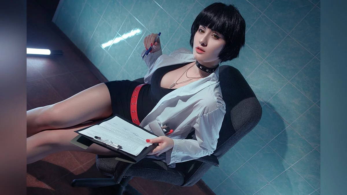Меико — властная и жестокая надзиратель из манги и аниме «Школа тюрьма» (Prison School). С провинившимися учениками она ведёт себя максимально жёстко — отвешивает пощёчины, стегает плёткой и даже садится им на лицо. Многим зрителям она запомнилась благодаря своим пышным формам. Алиса Арефьева — одна из немногих, кто может сделать действительно каноничный косплей на Меико. У этой девушки-косплеера грудь шестого размера. По её словам, в полной подборке фото вы увидите всё, что было в аниме-сериале и не только… А пока перед нами лишь первый кадр. Другие работы Алисы вы сможете найти в нашей статье.
