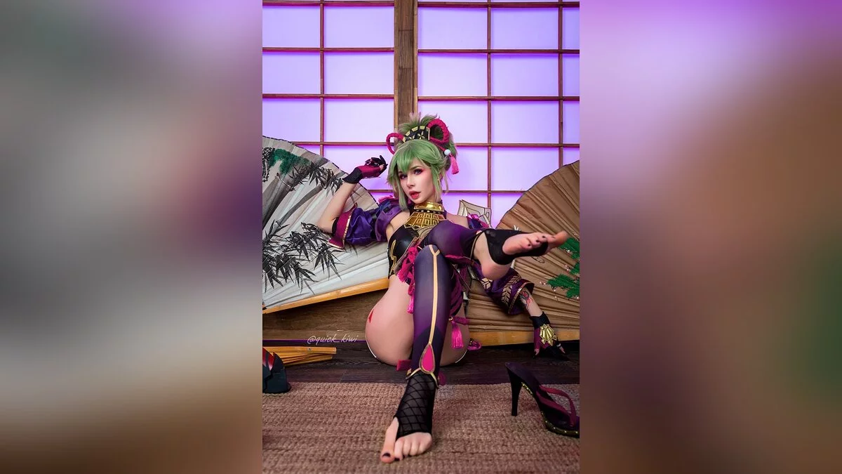 Genshin Impact — ещё одна вселенная, которая пользуется популярностью в косплее. Так, Quick_kiwi воплотила в жизнь образ Куки Синобу. Эта очаровательная бандитка выступает в роли превосходного лекаря. Но при необходимости она может ударить противника мощным электрическим зарядом.