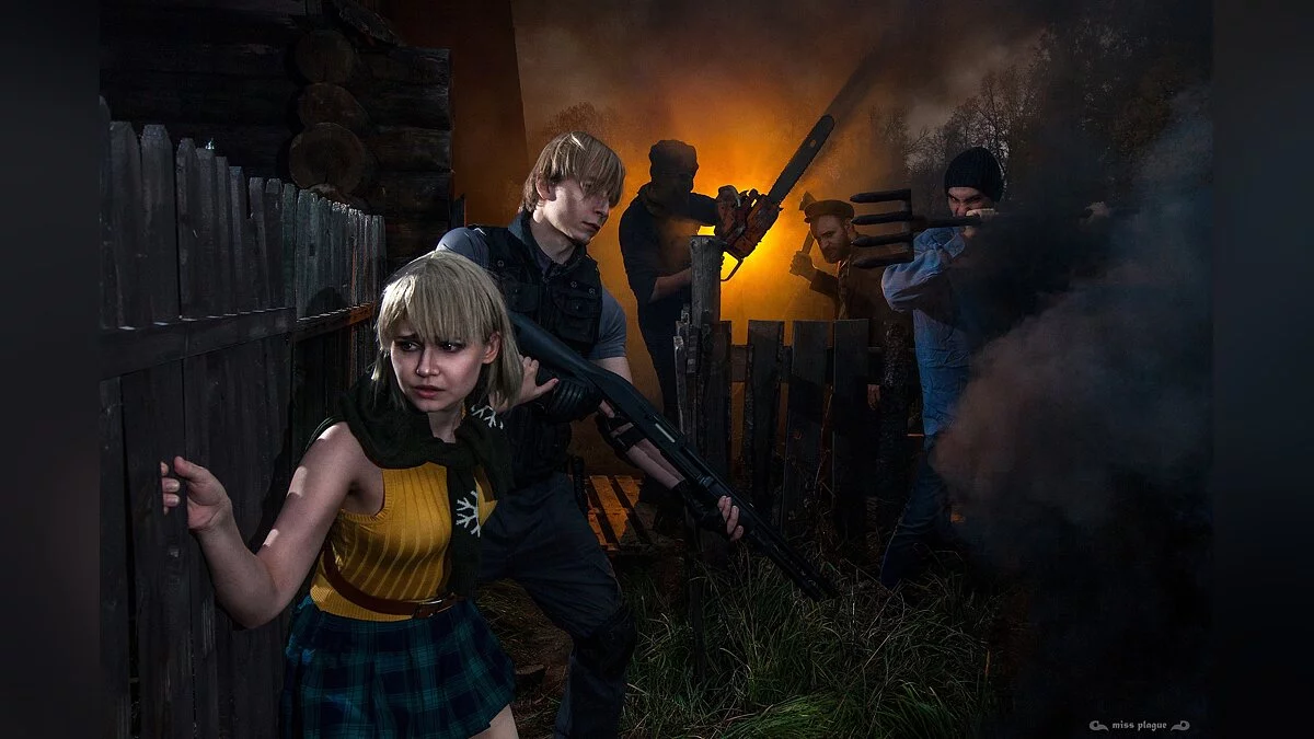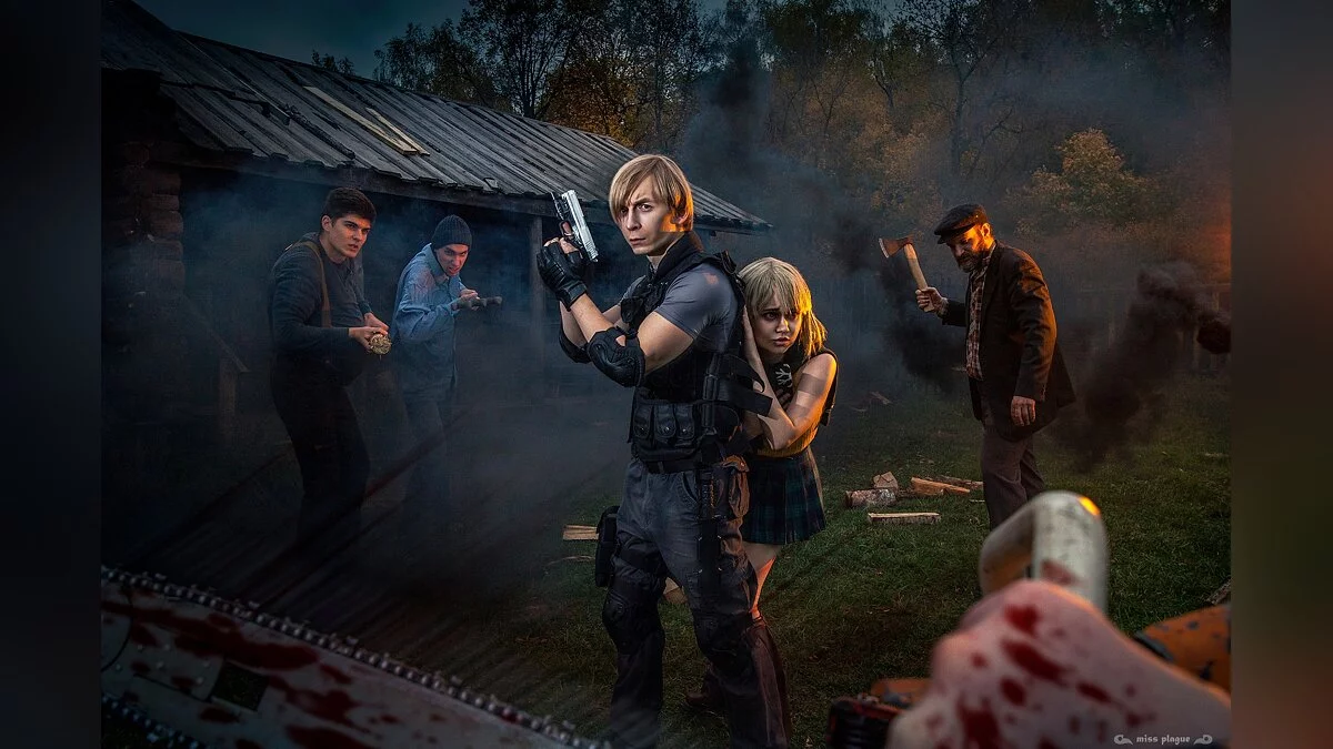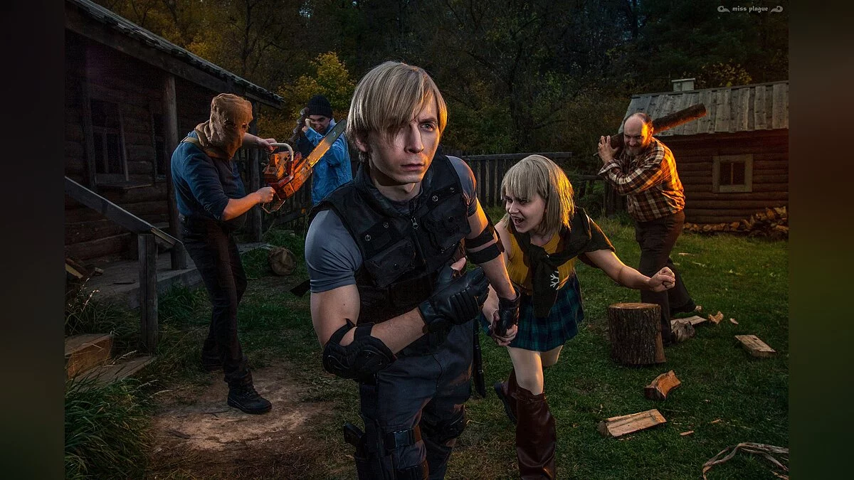 Евгений Васильев, больше известный как GraysonFin, часто возвращался к образу Леона Кеннеди. В эту подборку мы включили фотосет, в котором обыграна встреча его героя с бензопильщиком. Он оказался одним из самых опасных врагов в оригинальной Resident Evil 4. У него огромный запас здоровья, а его оружие убивает Леона первым же ударом.