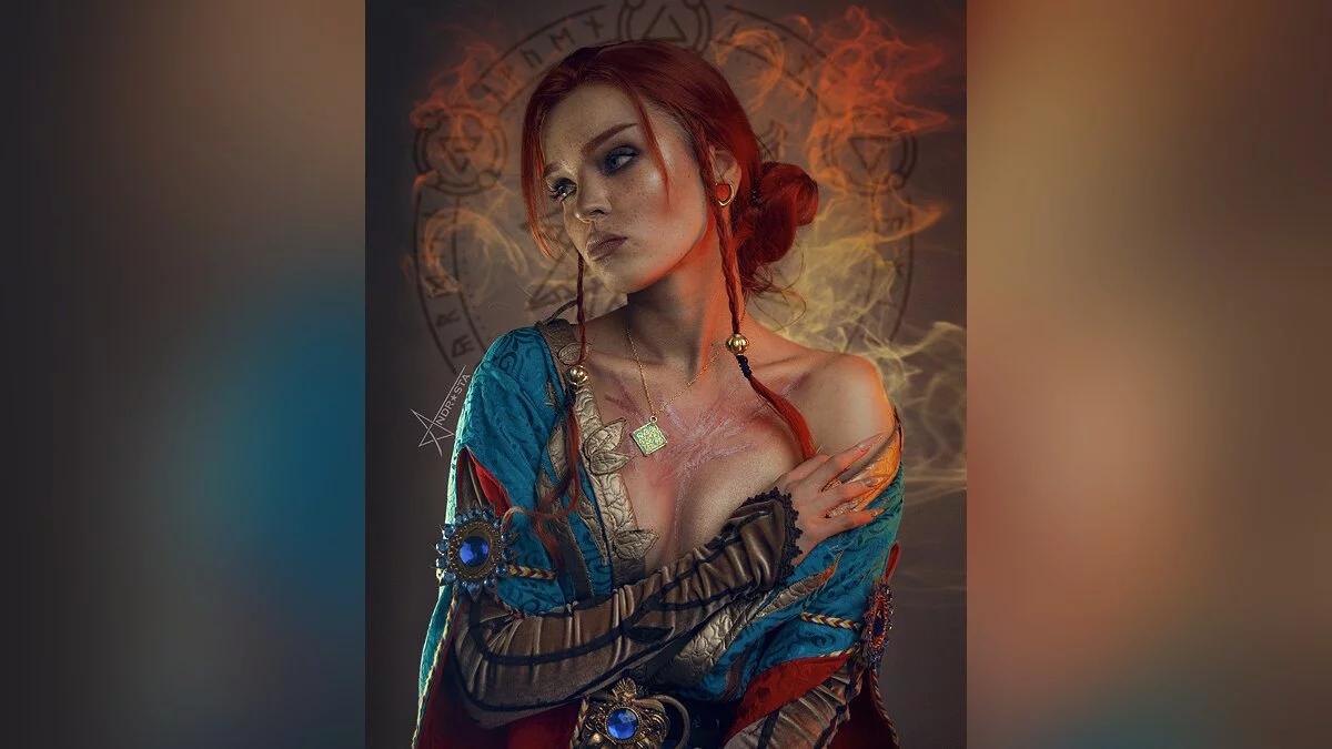 В косплее пользуются популярностью как игровой, так и книжный образы Трисс. Напомним, что в романах Анджея Сапковского у рыжеволосой чародейки были жуткие шрамы на груди, которые остались после битвы на Соддене. Andrasta показала, как выглядит эта рана на красивой девушке. В качестве наряда она выбрала альтернативное платье с глубоким декольте из третьей части игровой серии.