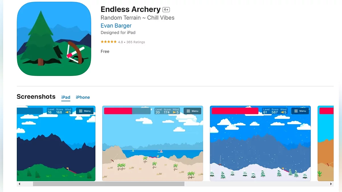 - Endless Archery — мінімалістична гра, в якій потрібно стріляти з лука (завантажити безкоштовно).