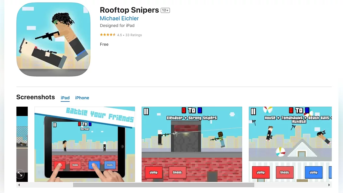 - Rooftop Snipers — мультиплеерна гра, в якій потрібно збити супротивника з карти одним пострілом (завантажити безкоштовно);