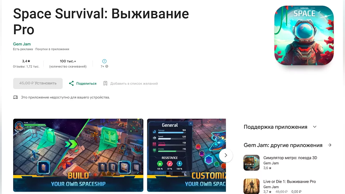 - Space Survival — космічний виживач з відкритим світом, дія якого розгортається у фантастичному майбутньому (завантажити безкоштовно);
