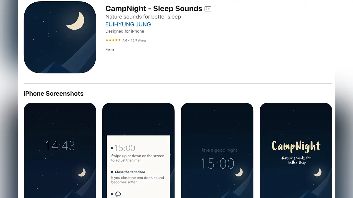 - CampNight — Sleep Sounds — програма для швидкого засинання зі звуками природи (завантажити безкоштовно);