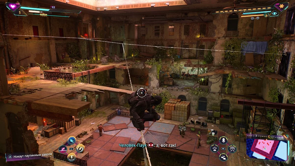 К тому же сюжет довольно долго подводит к главной теме всей игры — влиянию симбиота на Человека-паука. Когда долгожданный момент настаёт, Питер проводит в костюме буквально три-четыре миссии. Разработчики обещали, что мы увидим настоящие абьюзивные отношения с жесткой созависимостью. На деле ничего и близко похожего нет.