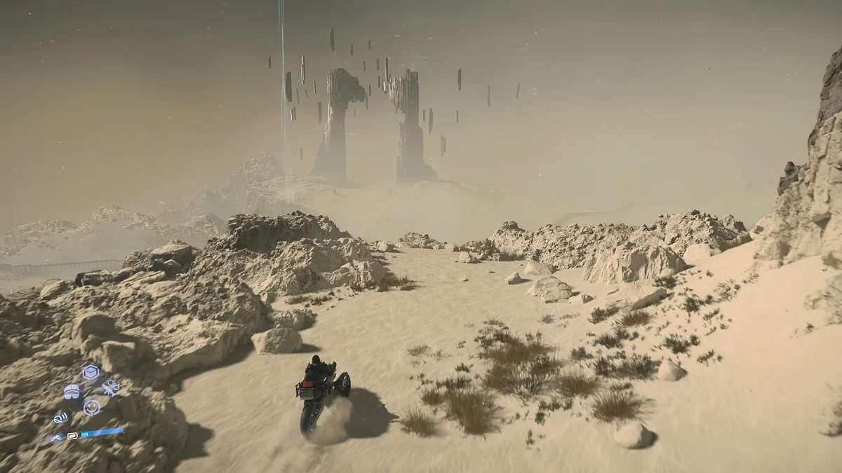До того ж відкритий світ — мертвий. Незважаючи на увагу до деталей, травинкам і пушинкам, у Death Stranding 2: On the Beach банально скучно перебувати. Крім бункерів, рідкісних тварин і пустельних пейзажів, головного героя не оточує нічого. Неочікуваних подій або незапланованих зустрічей не буде. Агресивні люди і істоти також сидять на строго відведених базах або частинах карти і навіть на метр не виходять за межі. З часом з'являються каравани інших кур'єрів, але їх завжди не більше двох-трьох осіб, а максимум взаємодії — взаємний лайк. Колег можна побачити тільки біля бункерів. Десь на відстані жодних інших живих людей не буде.