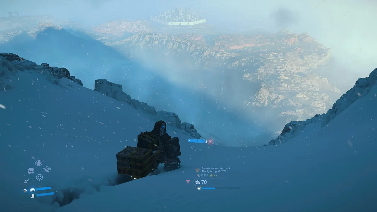 Машину довелося залишити, взявши вантаж на крихкі плечі. До того ж ми ніяк не очікували такого розвитку подій: запас особистих акумуляторів стрімко падав, додаткових ресурсів не було, а хіралійний сніг і дощ погіршували стан контейнерів з кожною хвилиною. І почався підйом. Коли система екзоскелета відмовила, сильно погіршуючи його баланс на стрімкому схилі — ми почали переживати, що квест виявиться проваленим. Лише на останньому видиху вдалося дістатися до чергової бази, підключити її до мережі та отримати довгоочікуване полегшення.