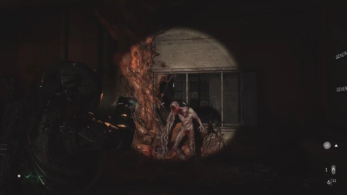 Стрільба в Cronos: The New Dawn реалізована на порядок краще, ніж у ремейку Silent Hill 2, ось тільки кількість пушок зведена до необхідного мінімуму: пістолет, дробовик, карабін, гранатомет і місцевий аналог BFG з Doom. Патронів за класикою видають в обмеженій кількості, але часто їх вистачає на зачистку будь-якої арени. У кожної зброї є система зарядженого пострілу, яка завдає більше шкоди і дозволяє економити ресурси. Єдиний мінус — не можна просто натиснути кнопку і дочекатися зручного моменту, щоб вистрілити. Заряджений постріл виконується автоматично після його активації, тому на перших порах потрібно звикнути до цієї особливості. Протягом всього проходження я практично не користувався звичайною стрільбою, віддаючи перевагу більш ефективному способу відстрілу монстрів.