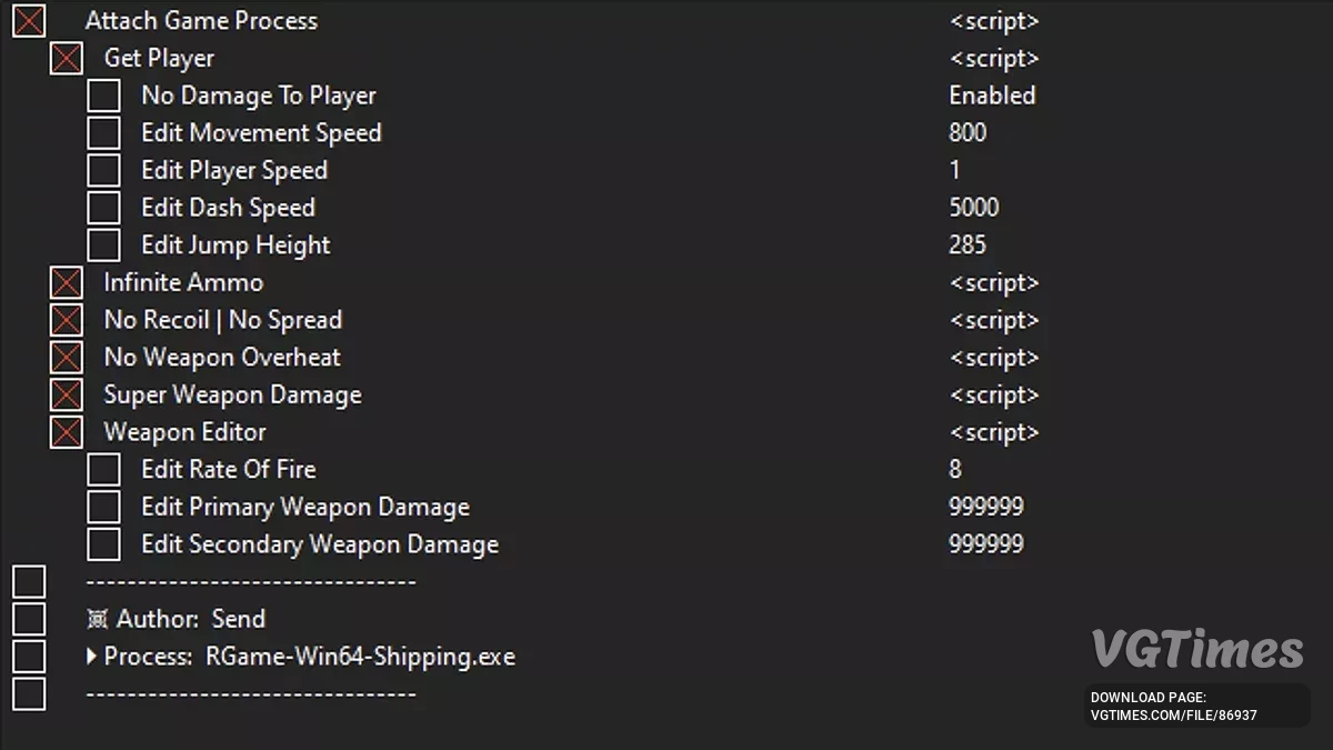 Функції та команди: Без шкоди для гравця — Гравець не отримує ушкоджень. Редагувати швидкість руху — Змінити швидкість пересування. Редагувати швидкість гравця — Змінити швидкість гравця. Редагувати швидкість ривка — Змінити швидкість ривка. ...