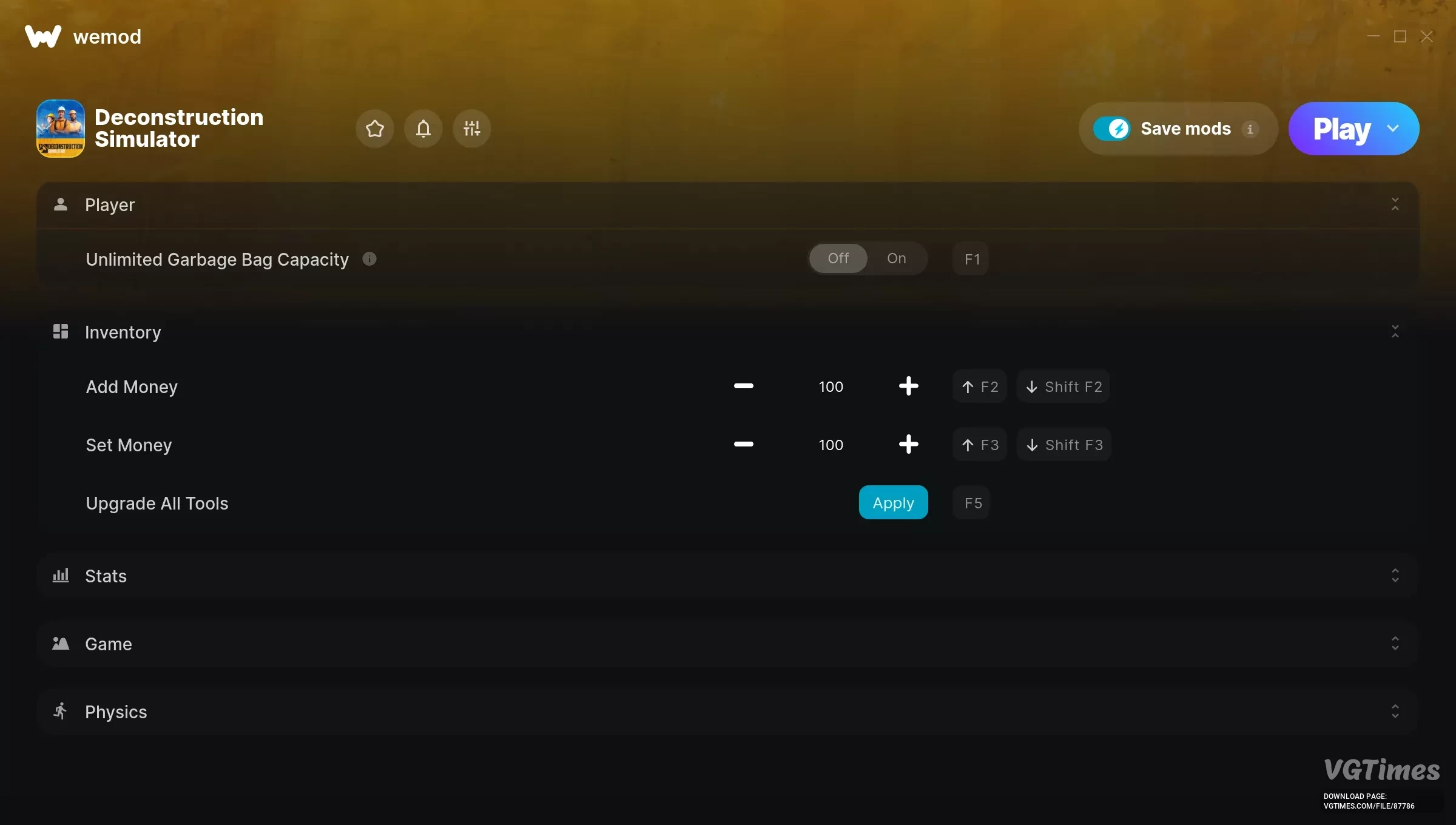 Функції та команди: Безмежна ємність сміттєвого мішка – Безмежна ємність сміттєвого мішка. Додати гроші – Додати гроші. Встановити гроші – Встановити суму грошей. Покращити всі інструменти – Покращити всі інструменти. Максимальна репутація ...