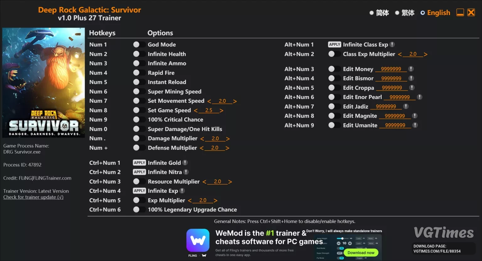 Дата створення/оновлення трейнера: 26.03.2024 Мова трейнера: англійська Кількість функцій: 14 Під час гри натискаємо потрібні гарячі клавіші (які можна редагувати) і отримуємо бажаний результат. Активація функцій мишкою доступна лише в PRO версії. ...