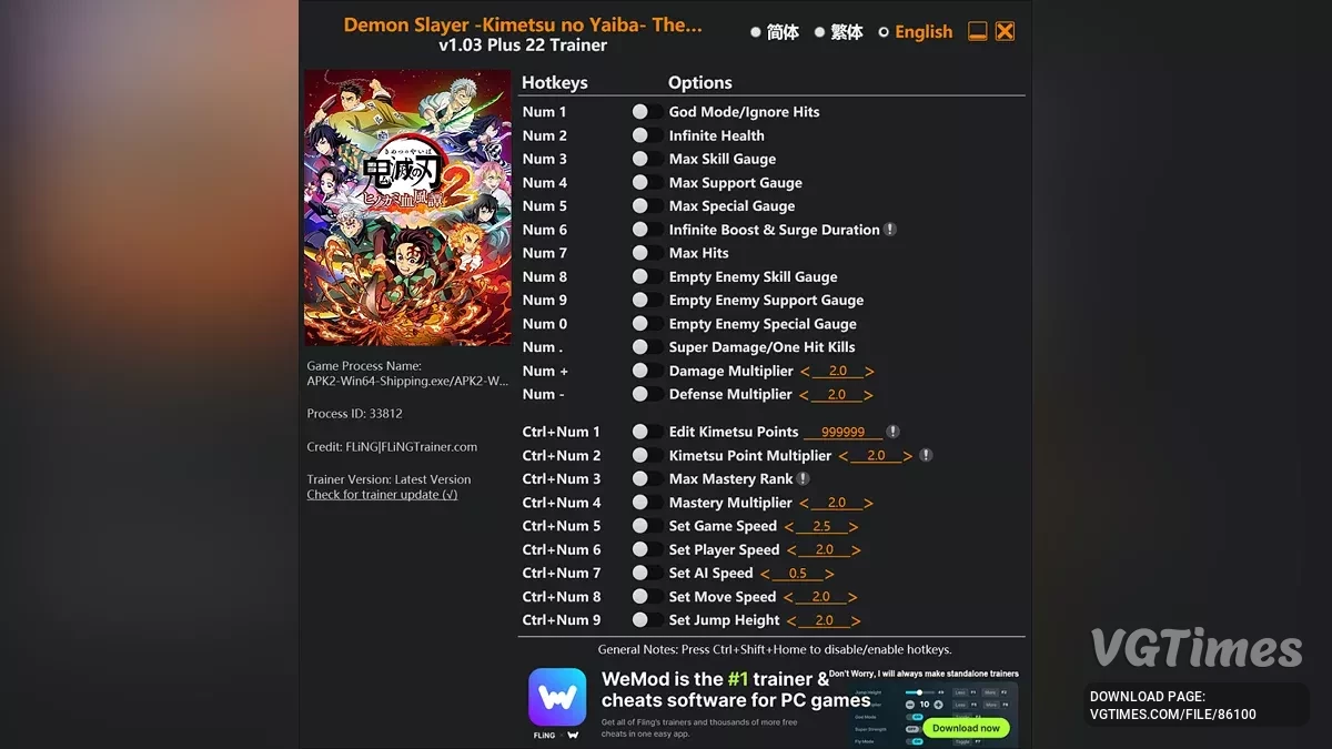 Функції та команди: Num 1 – Режим бога/Ігнорувати шкоду. Num 2 – Безмежне здоров'я. Num 3 – Максимальна шкала навичок. Num 4 – Максимальна шкала підтримки. Num 5 – Максимальна шкала спеціального прийому. Num 6 – Безмежна тривалість приско ...