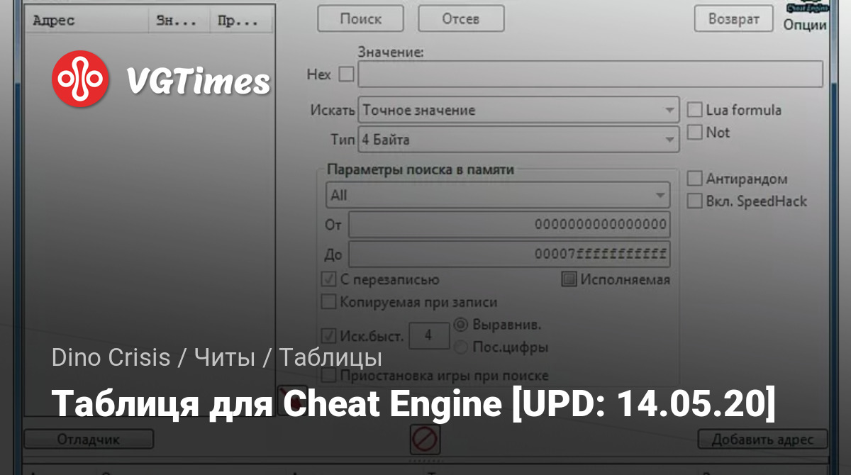 Таблиця для Cheat Engine [UPD: 14.05.20]