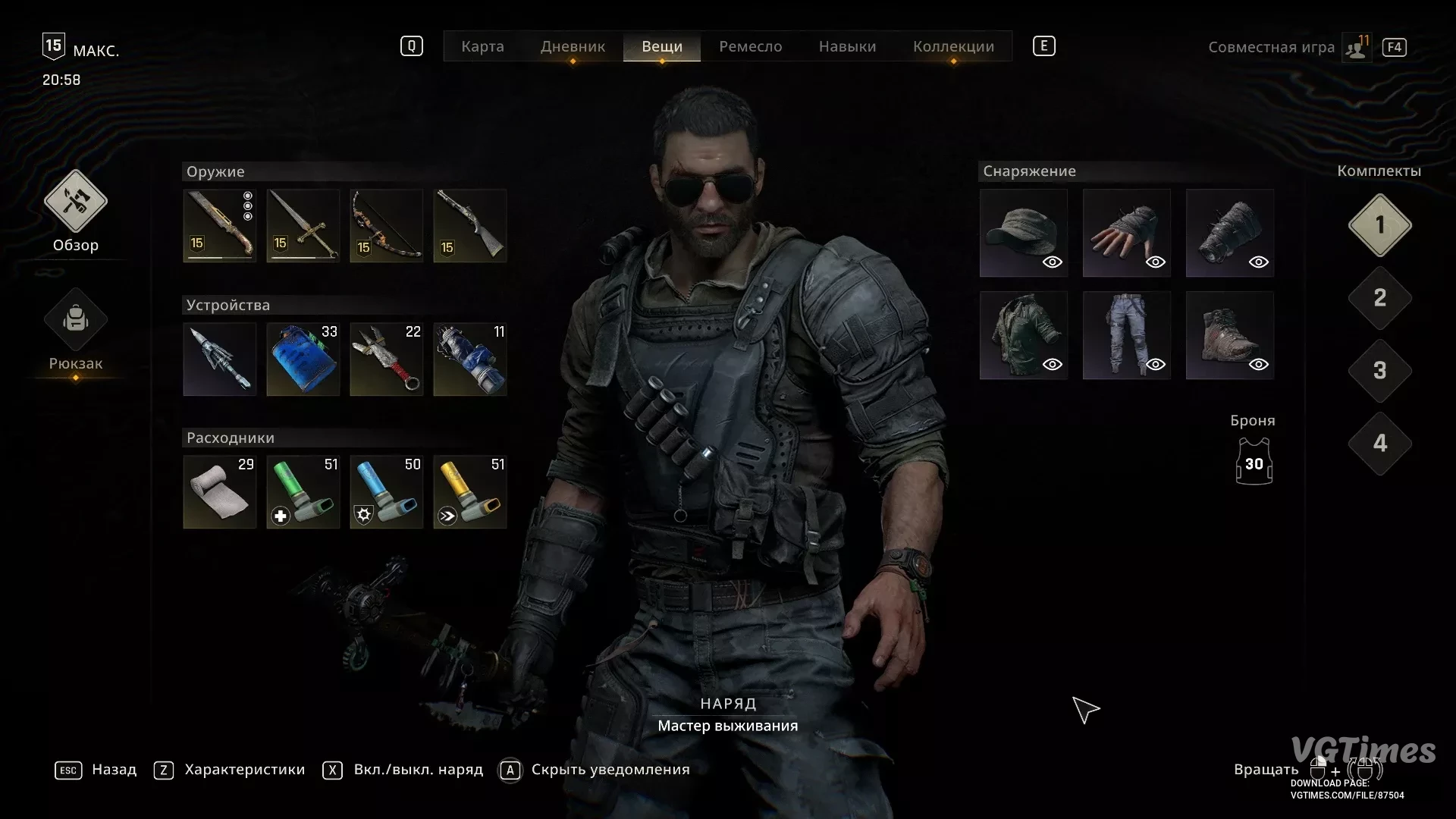 Збереження, в якому все пройдено та зібрано, готове для НГ+. Найбільш корисні метальні предмети та витратні матеріали; Найнеобхідніша вогнепальна зброя; 15 рівень + всі навички розблоковані; Дослідження завершено; Всі квести виконані; Всі ...