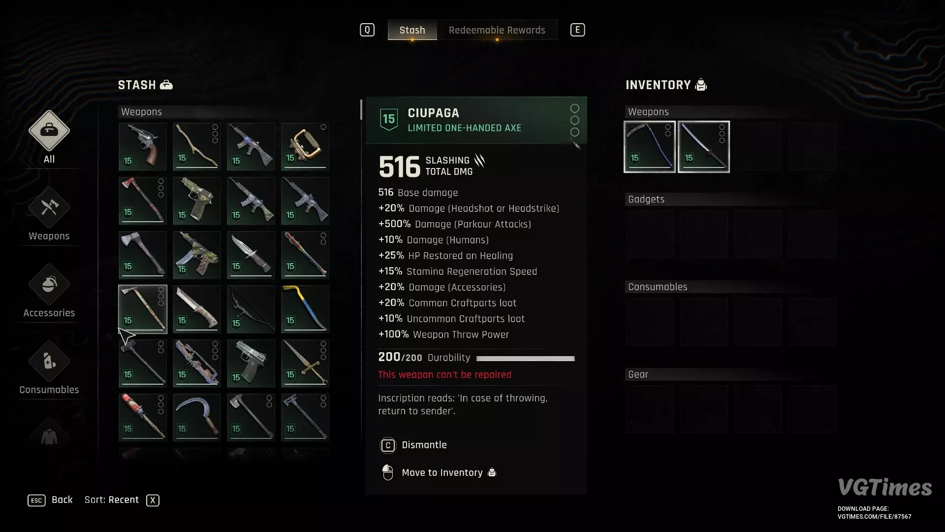 Це збереження надає рідкісні легендарні креслення для покращеної зброї, а також кілька готових екземплярів 15 рівня, здатних знищити будь-якого супротивника. Ігровий процес поєднує в собі хардкорні паркур-бої, нічні сутички з мутантами та прийняття с ...