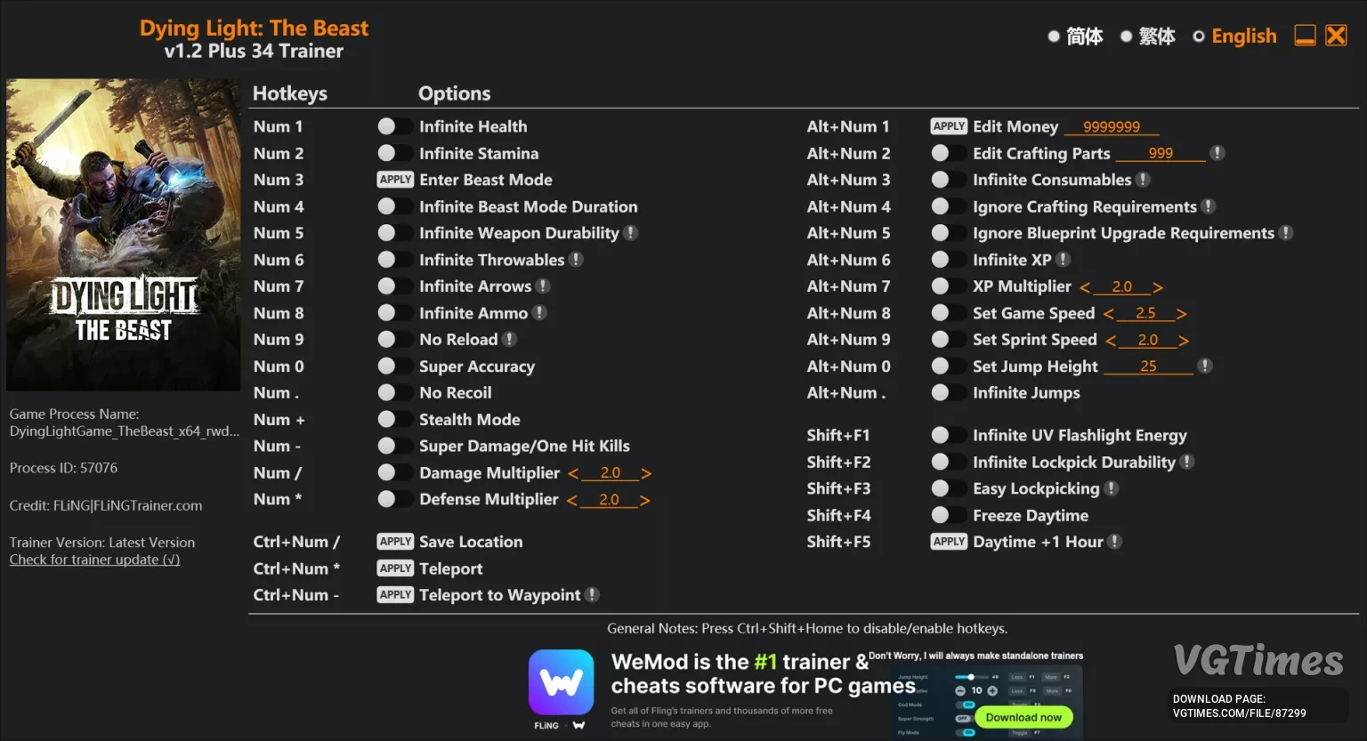 Функції та команди: Num 1 – Безмежне здоров'я – Infinite Health. Num 2 – Безмежна витривалість – Infinite Stamina. Num 3 – Увімкнути режим звіра – Enter Beast Mode. Num 4 – Безмежна тривалість режиму звіра – Infinite Beast Mode Duration. Nu ...