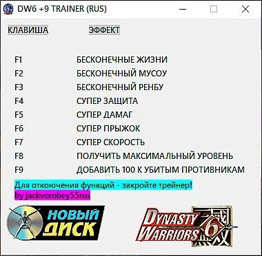 Трейнер підходить для будь-якої російської версії гри. (Новий диск, інші ріпаки) Функціонал: F1 — Нескінченні життя F2 — Нескінченний мусоу F3 — Нескінченну ренбу F4 - Супер захист F5 - Супер дамаг F6 — Супер стрибок F7 — Супер швидкість F8 ...
