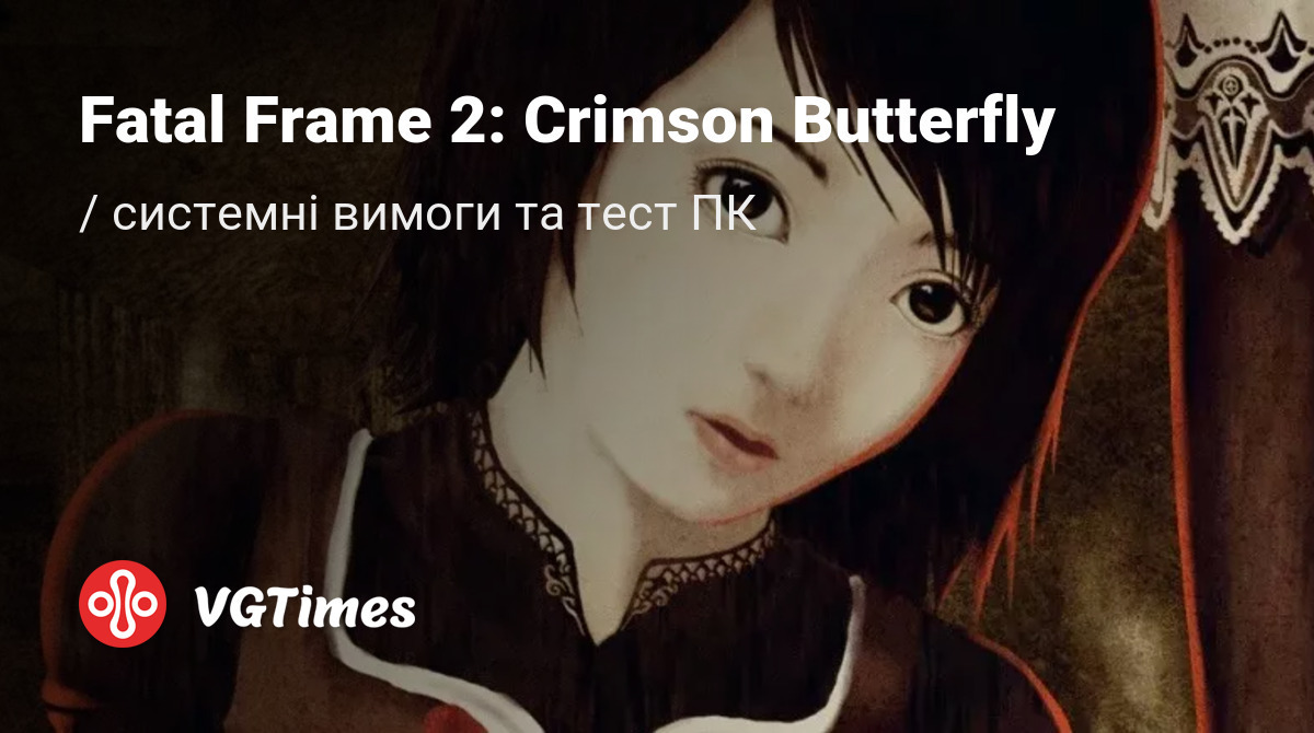 Fatal Frame 2: Crimson Butterfly Гравці: 9.4/10 5 оцінок Про гру Купити гру Вимоги Схожі ігри Відгуки та оцінки Галерея Досягнення Форум Дати Цитати Системні вимоги Fatal Frame 2: Crimson Butterfly У списку цільових платформ цієї гри немає PC.Якщо гру надумають випускати на PC, системні вимоги для неї з'являться на цій сторінці.