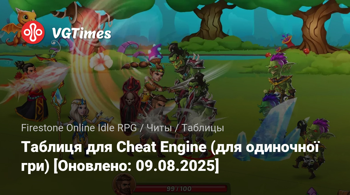 Ігри Firestone Online Idle RPG Файли Таблиці Таблиця для Cheat Engine (для одиночної гри) [Оновлено: 09.08.2025]
