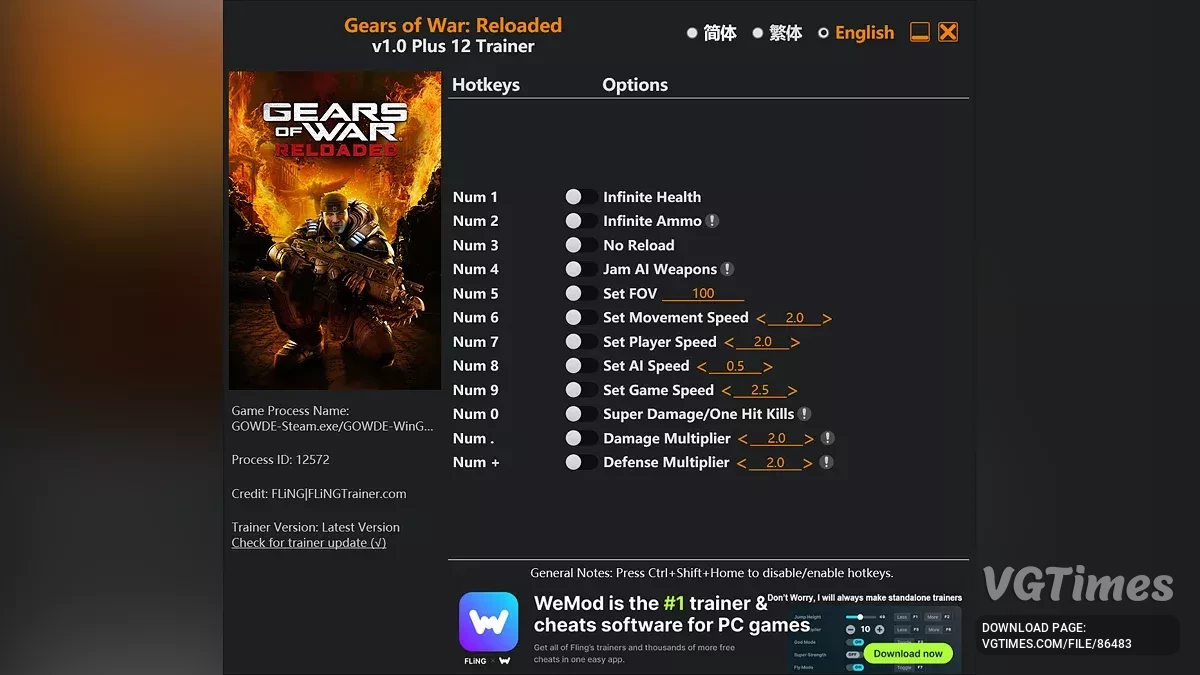 Функції та команди: Num 1 – Нескінченне здоров'я — безмежне здоров'я. Num 2 – Нескінченні патрони — безмежні патрони. Num 3 – Без перезарядки — без перезарядки. Num 4 – Заклинювання зброї ІІ — заклинювання зброї ІІ. Num 5 – Встановити кут о ...
