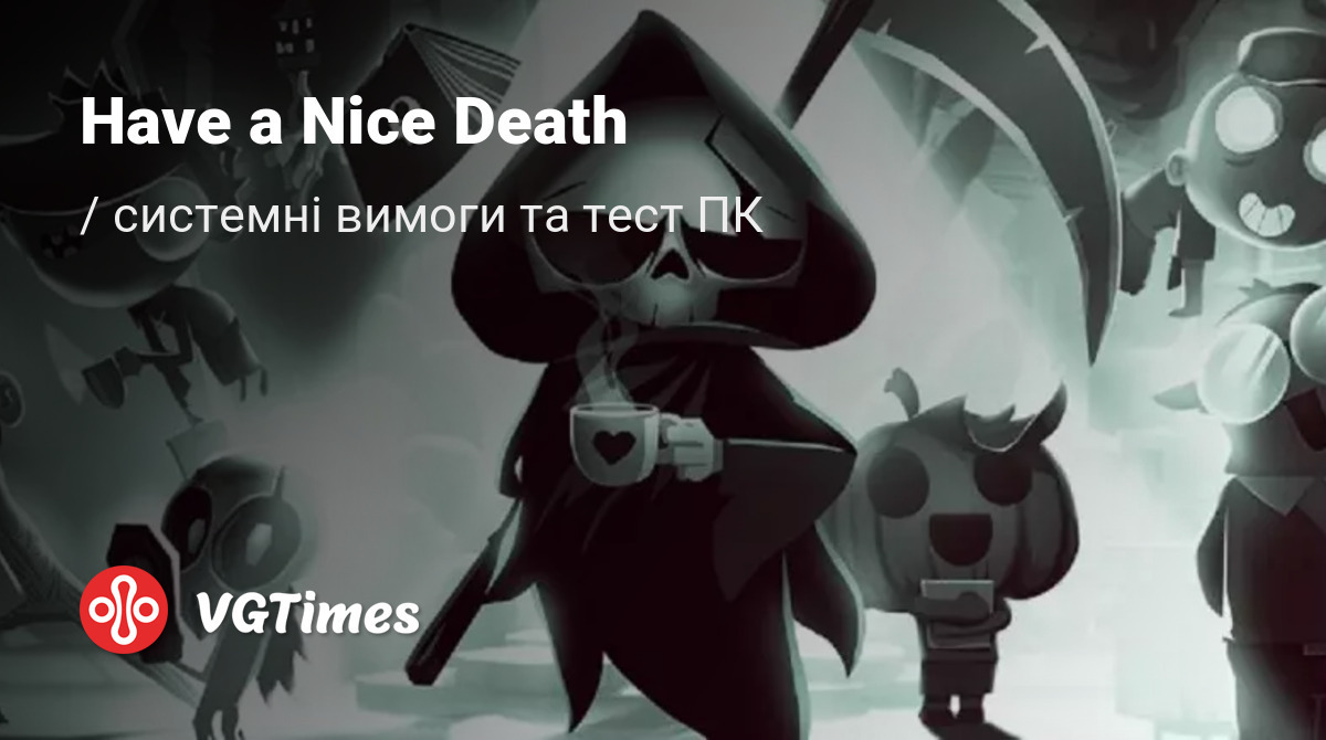 Протестуйте свій ПК, щоб дізнатися, чи піде у вас Have a Nice Death. Тестування порівняє характеристики вашого PC із системними вимогами гри та за необхідності дасть рекомендації щодо апгрейду