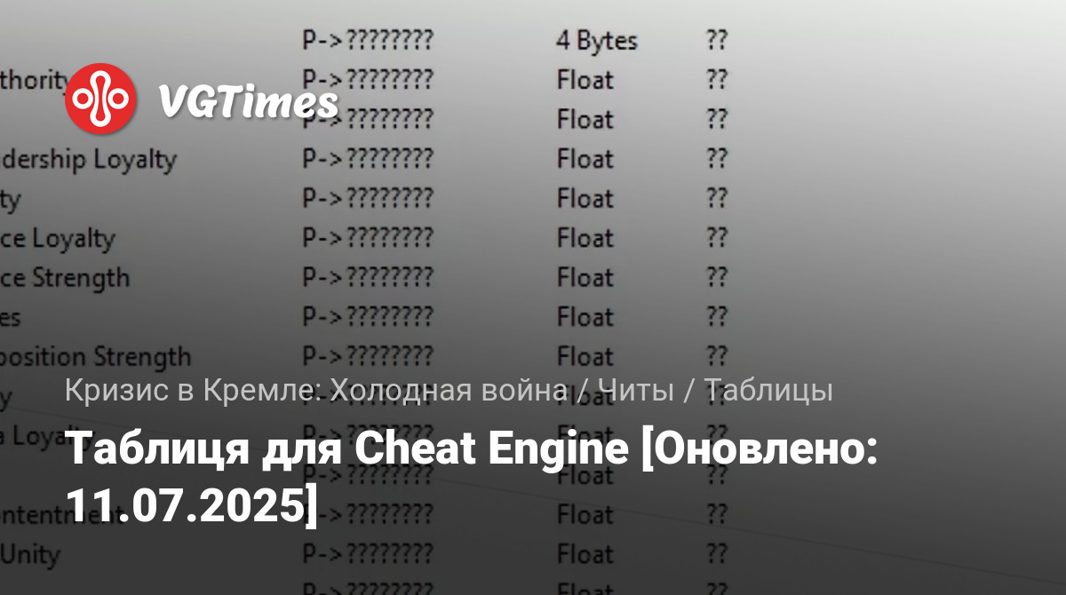 Таблица для Cheat Engine [UPD: 11.07.2025]
