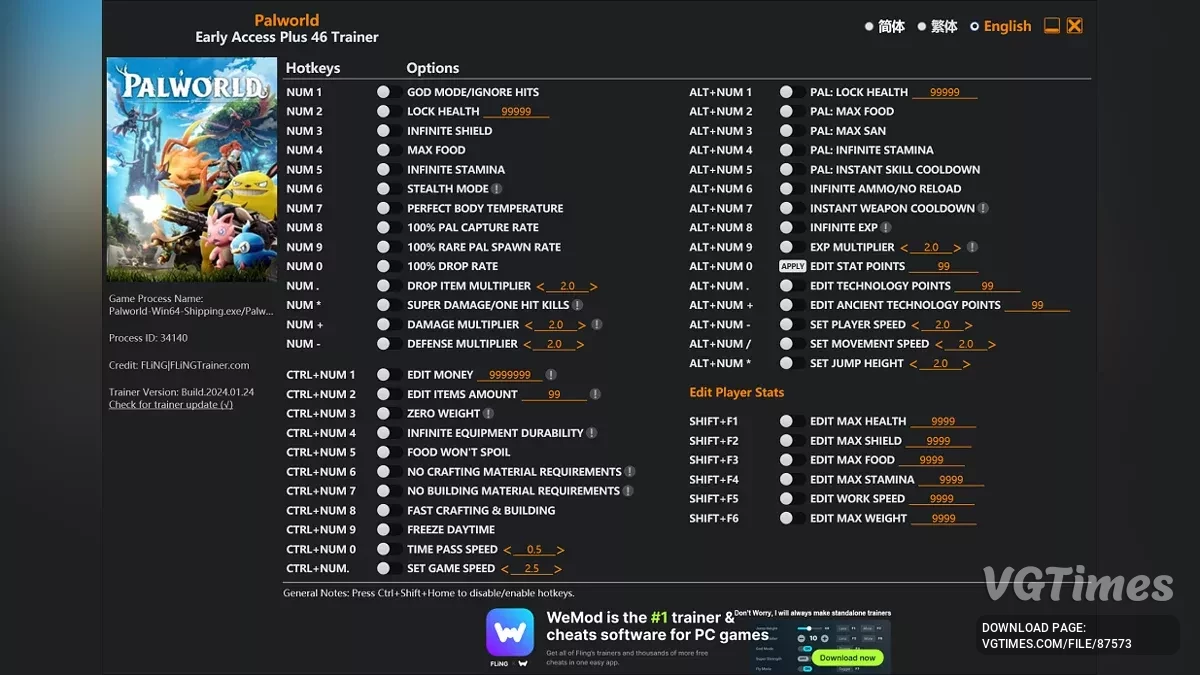 Завантажте найкращі та нові чіти і тренери для Palworld. Відкрийте для себе топові файли, які допоможуть вам досягти нових висот у грі.