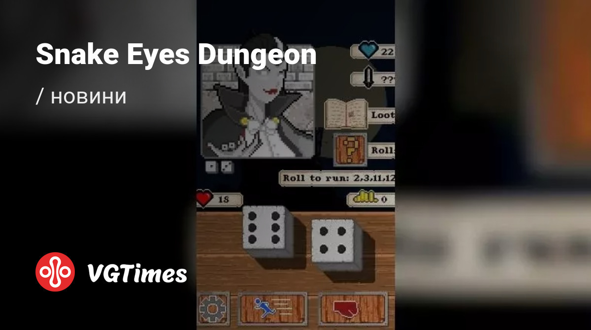 Останні новини та чутки про Snake Eyes Dungeon за сьогодні та 2025 рік. Тут ви знайдете всі новини оновлень Snake Eyes Dungeon, дізнаєтесь дату виходу для PC, коли гра вийде на інших платформах та інші анонси. Також ми напишемо про системні вимоги Snake Eyes Dungeon для ПК, про піратські зломи та появу гри на торрентах, звідки її можна скачати безкоштовно