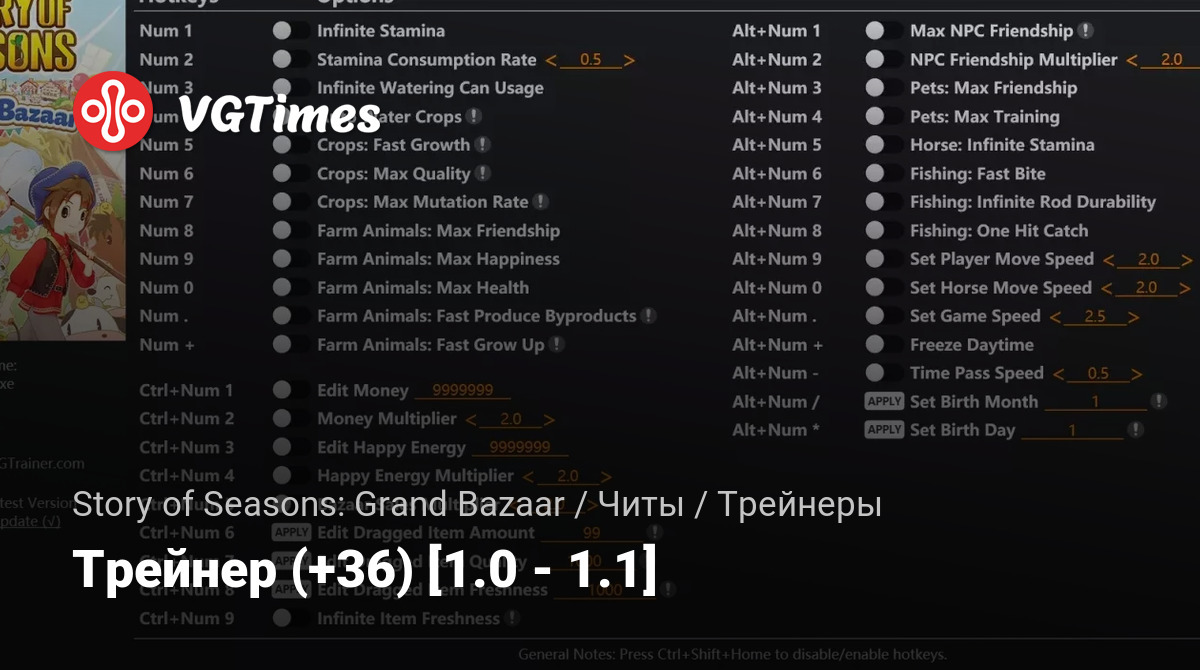 • Story of Seasons: Grand Bazaar — Трейнер (+36) [1.0 - 1.1]