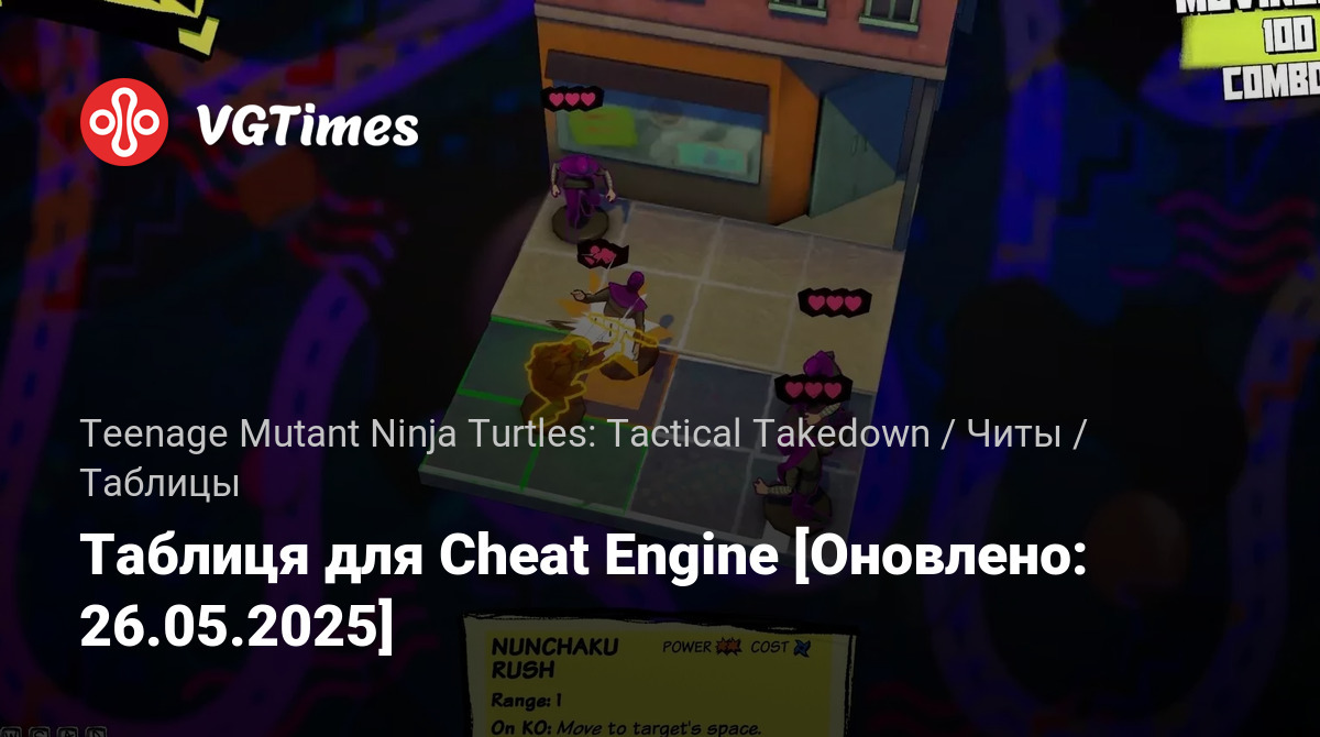 Ігри Teenage Mutant Ninja Turtles: Tactical Takedown Файли Таблиці Таблиця для Cheat Engine [Оновлено: 26.05.2025]