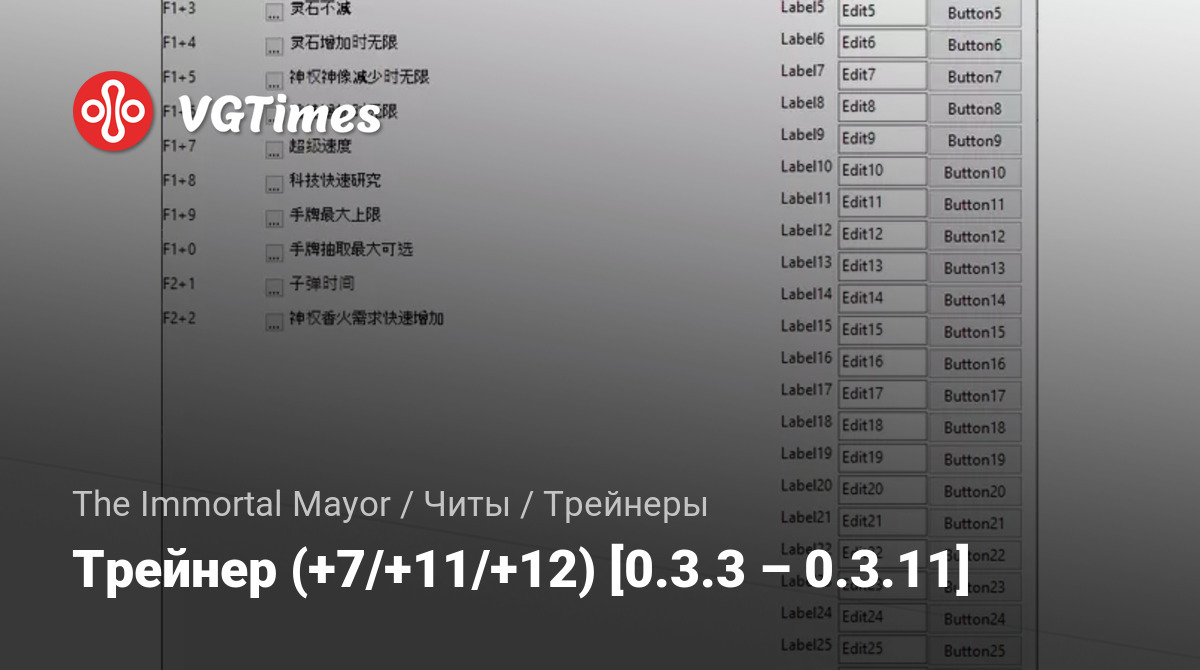 • The Immortal Mayor — Трейнер (+7/+11/+12) [0.3.3 – 0.3.11]