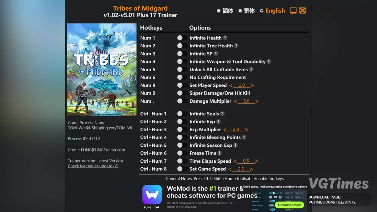 Видання : Steam; Мова трейнера : англійська/китайська; Кількість функцій : 17; Дата створення трейнера : 13.04.2023. Функції : Numpad 1 : нескінченне здоров'я; Numpad 2 : нескінченна міцність дерева; Numpad 3 : необмежені окуляри нави ...