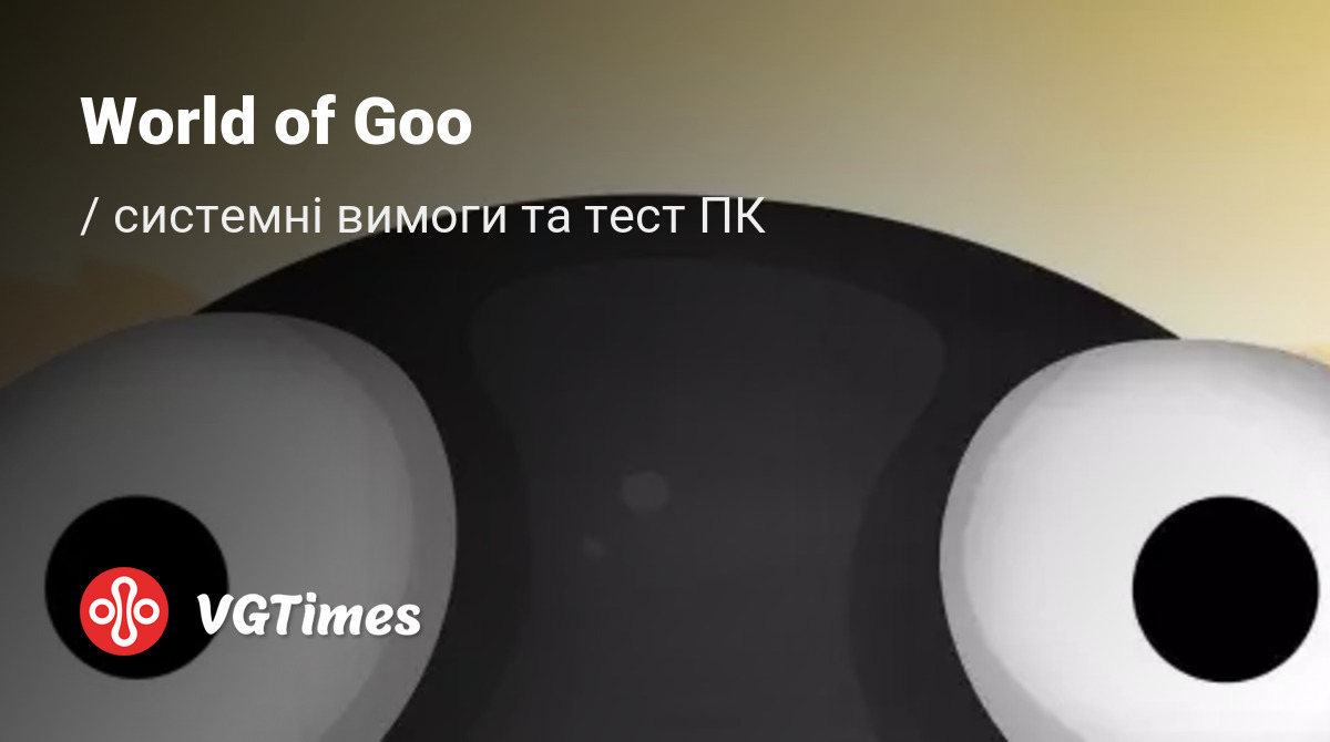 Протестуйте свій ПК, щоб дізнатися, чи піде у вас World of Goo. Тестування порівняє характеристики вашого PC із системними вимогами гри та за необхідності дасть рекомендації щодо апгрейду