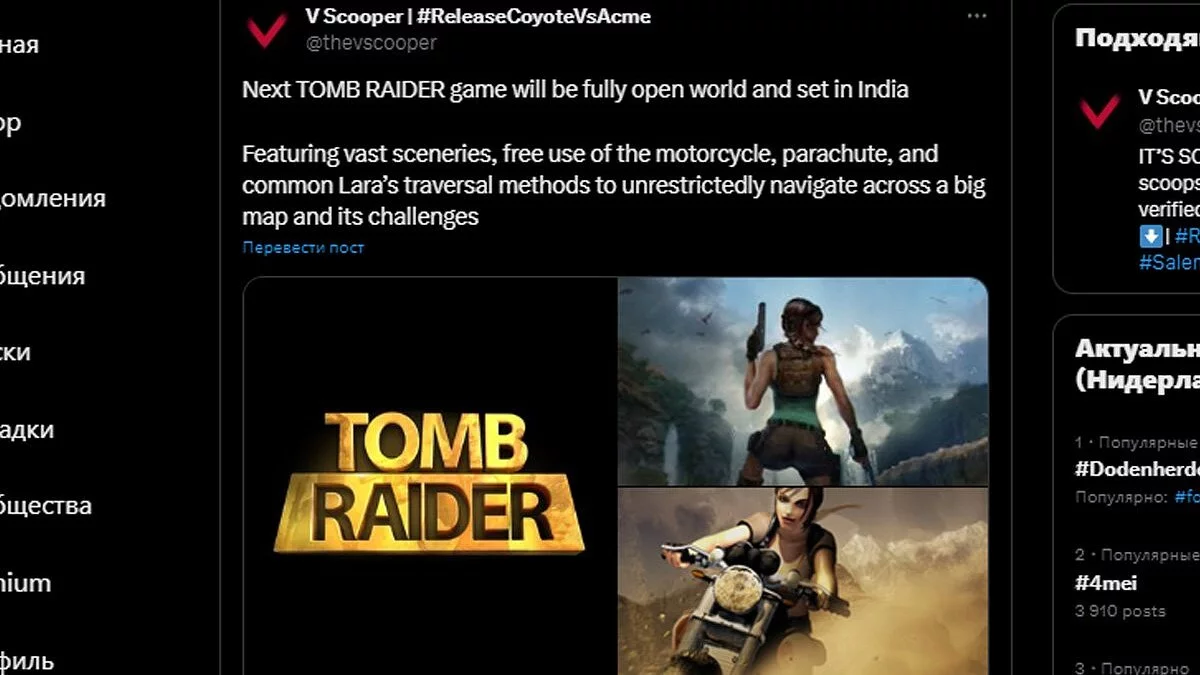 В сети появились первые слухи о будущей части серии Tomb Raider. Согласно им, Лара Крофт окажется в Индии, в игре будет открытый мир, а сама героиня выступит против Общества рейдеров.