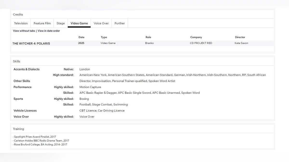 Наблюдальні користувачі звернули увагу на резюме одного з акторів, залучених до розробки The Witcher 4. Виконавець зіграє зовсім нового персонажа, який ще не з'являвся в серії.