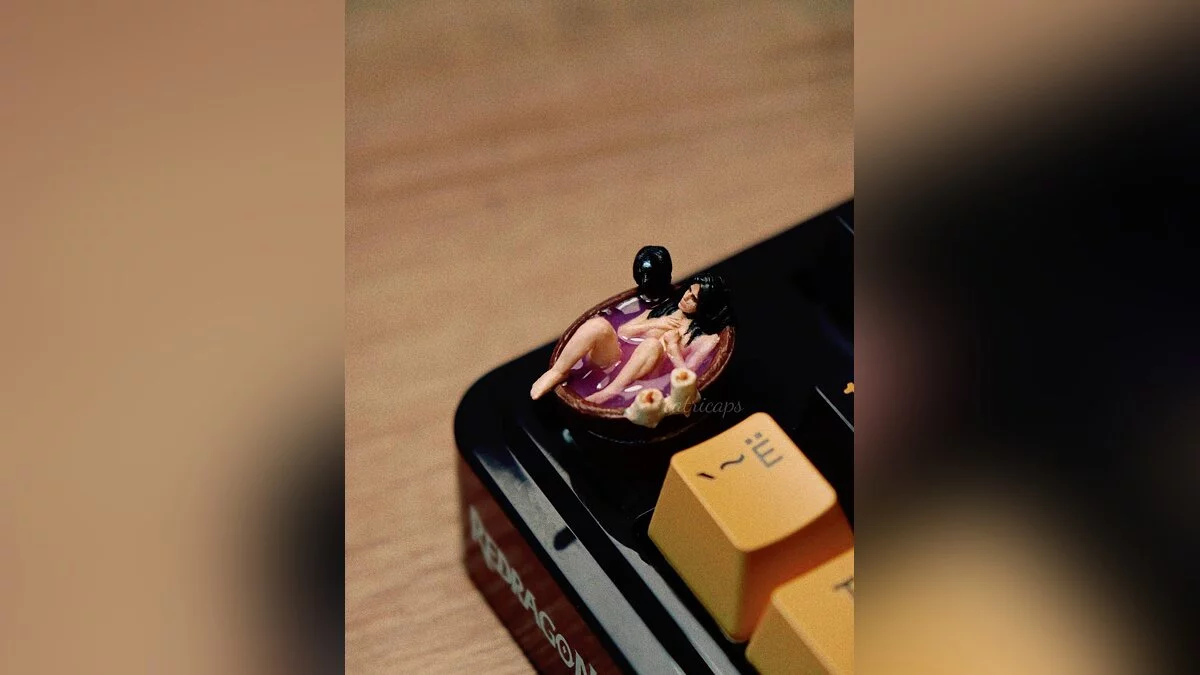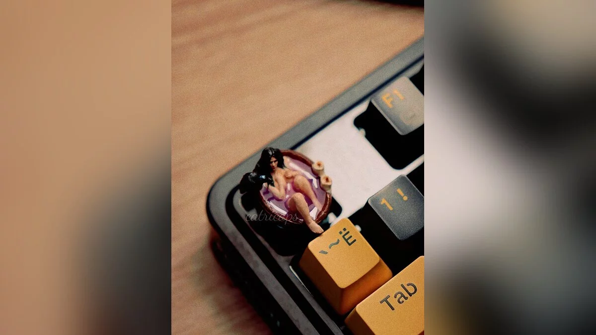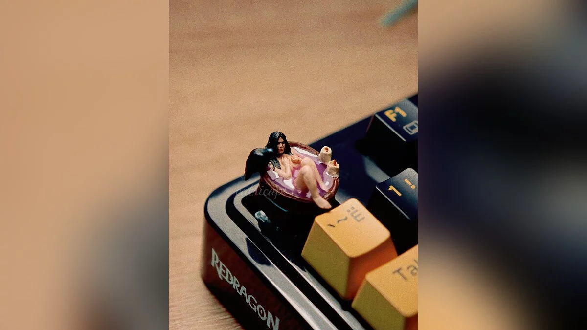 Дівчина випустила лімітовану серію вручну виготовлених кейкапів у вигляді магички, яка приймає ванну. Моделька виконана з великою кількістю деталей — на краю бадді навіть помістився чорний ворон, один з символів Йенніфер.