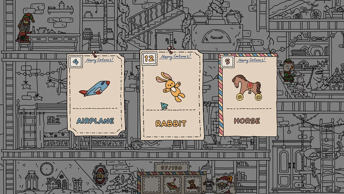FIND ALL: Christmas — гра про пошук предметів на великому різдвяному арті. Всього потрібно знайти 150 прихованих предметів. Проект отримав 100% рейтингу. Сторінка в Steam.
