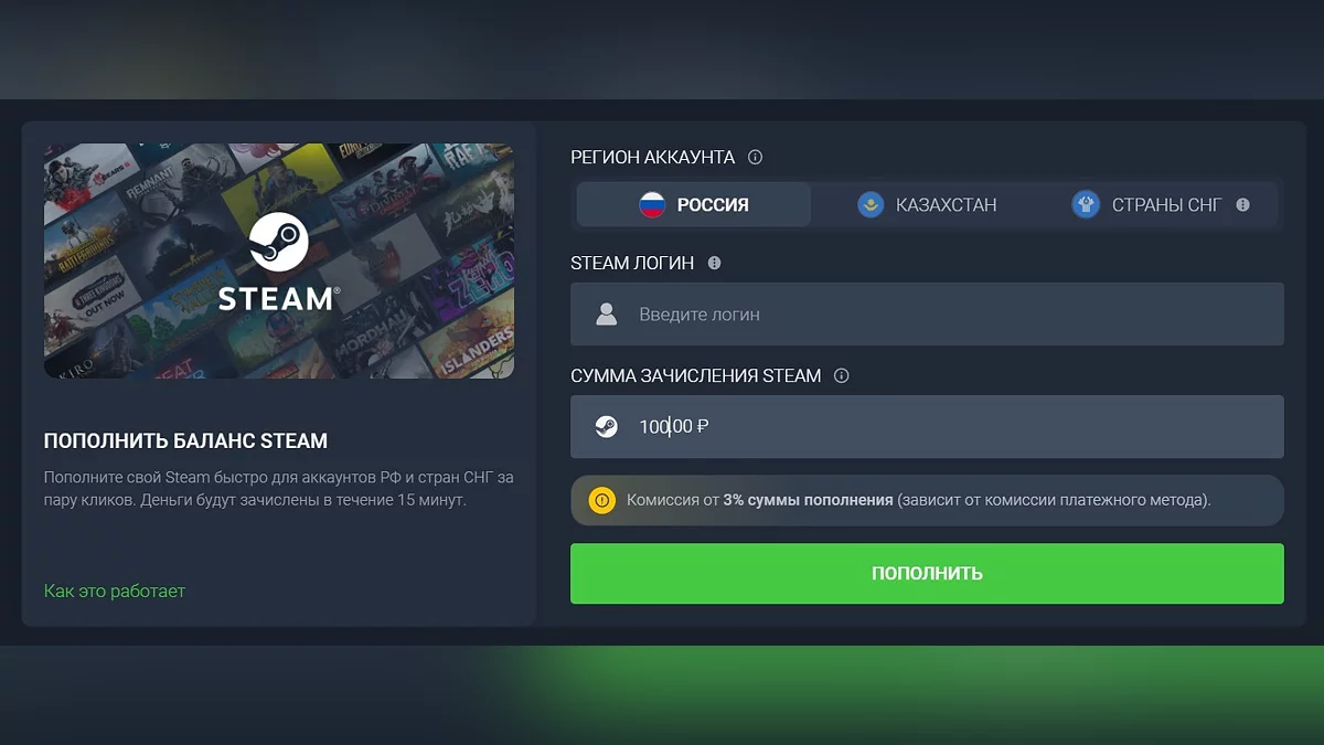 Крім того, геймери також можуть поповнити баланс Steam (з 3% комісією сервісу) на будь-яку суму від 100 руб.
