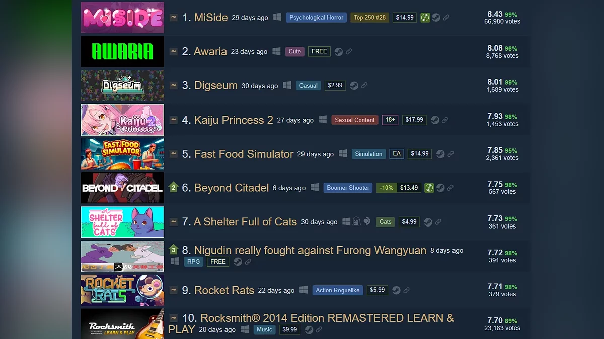 В Steam помічено новий інді-хіт з рейтингом 98%, який коштує 125 грн і увійшов у ТОП-3 найвищо оцінених проєктів місяця