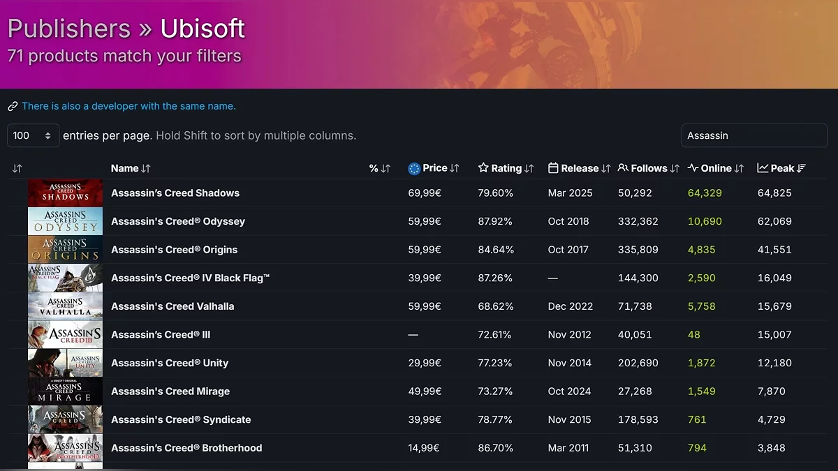 Assassin's Creed Shadows продемонструвала успішний старт — в Steam вона вже перевершила Origins та Odyssey за рекордним онлайном
