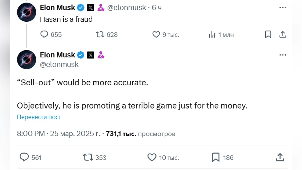 Американський мільярдер заявив наступне: «Хасан — шахрай. “Продавець” було б точніше. Об'єктивно кажучи, він рекламує жахливу гру тільки заради грошей».