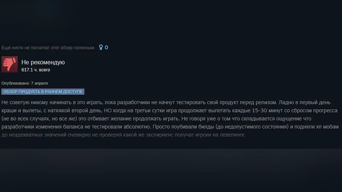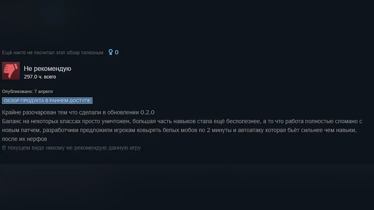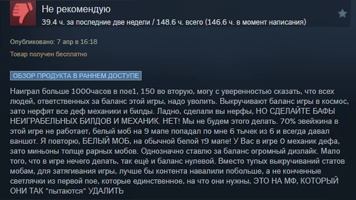 В основному скарги на патч 0.2 стосуються ігрового балансу та оптимізації. Багато користувачів масово скаржаться на «душний» геймплей, занадто низький урон, неробочі білди, перекачаних мобів, а також постійні виліти та зависання.